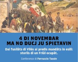 Vi spietìn doman par la conference “4 DI NOVEMBAR. MA NO DUCJ JU SPIETAVIN. Dai fusilâts di Vilès ai predis mandâts in esili: storiis di un Friûl ocupât.” Conference di Ferruccio Tassin. Martars ai 4 di Novembar 2025, Vicolo Sillio 4 Udin – aes 6 sore sere.                                lei di plui +