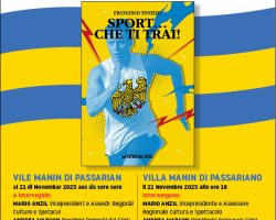 WALTER TOMADA INCONTRE L’AUTÔR FRANCESCO TONIZZO, a Vile Manin di Passarian ai 21 di Novembar 2025 aes sîs sore sere. A intervegnin: MARIO ANZIL Vicepresident e Assesôr Regjonâl Culture e Spetacul; ANDREA MARCON President Regjonâl dal CONI; DANIELE PUNTEL President de Associazion Sportive Furlane; ANDREA VALCIC President de Clape di Culture Patrie dal Friûl. lei di plui +