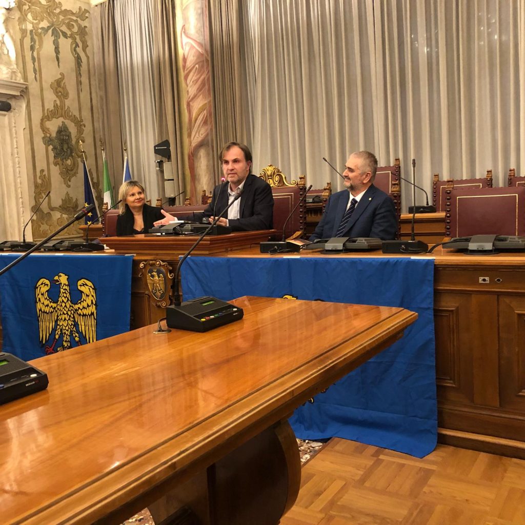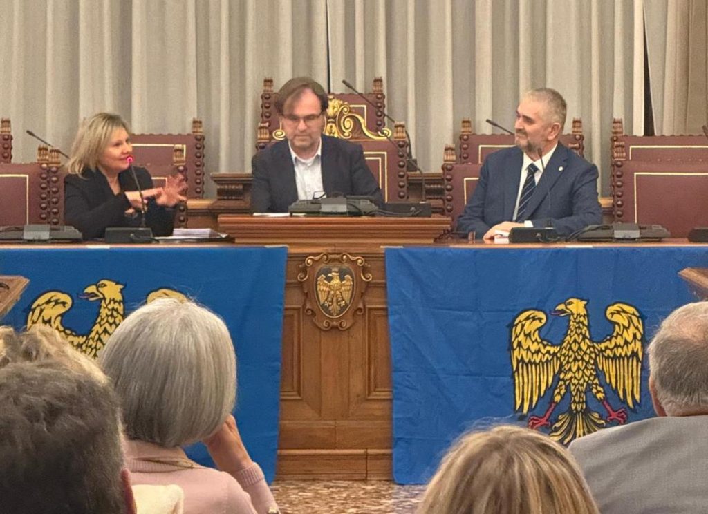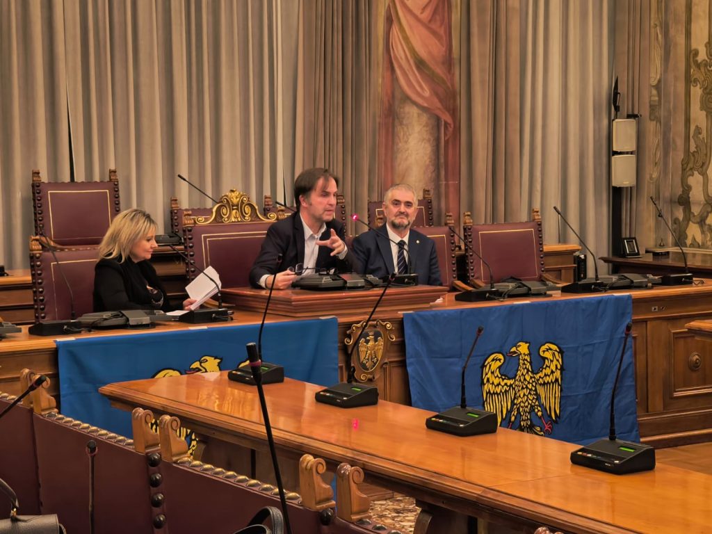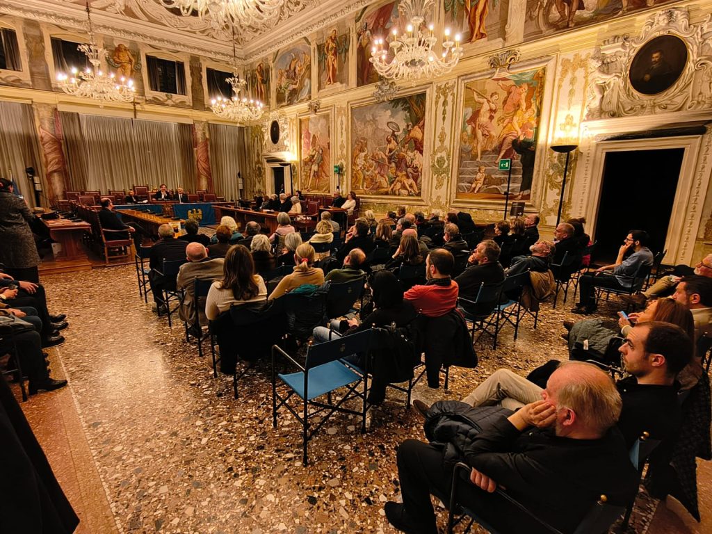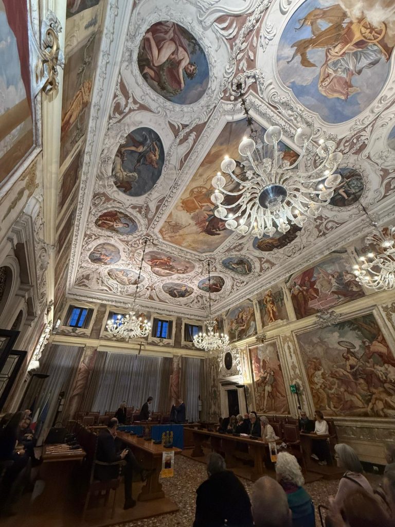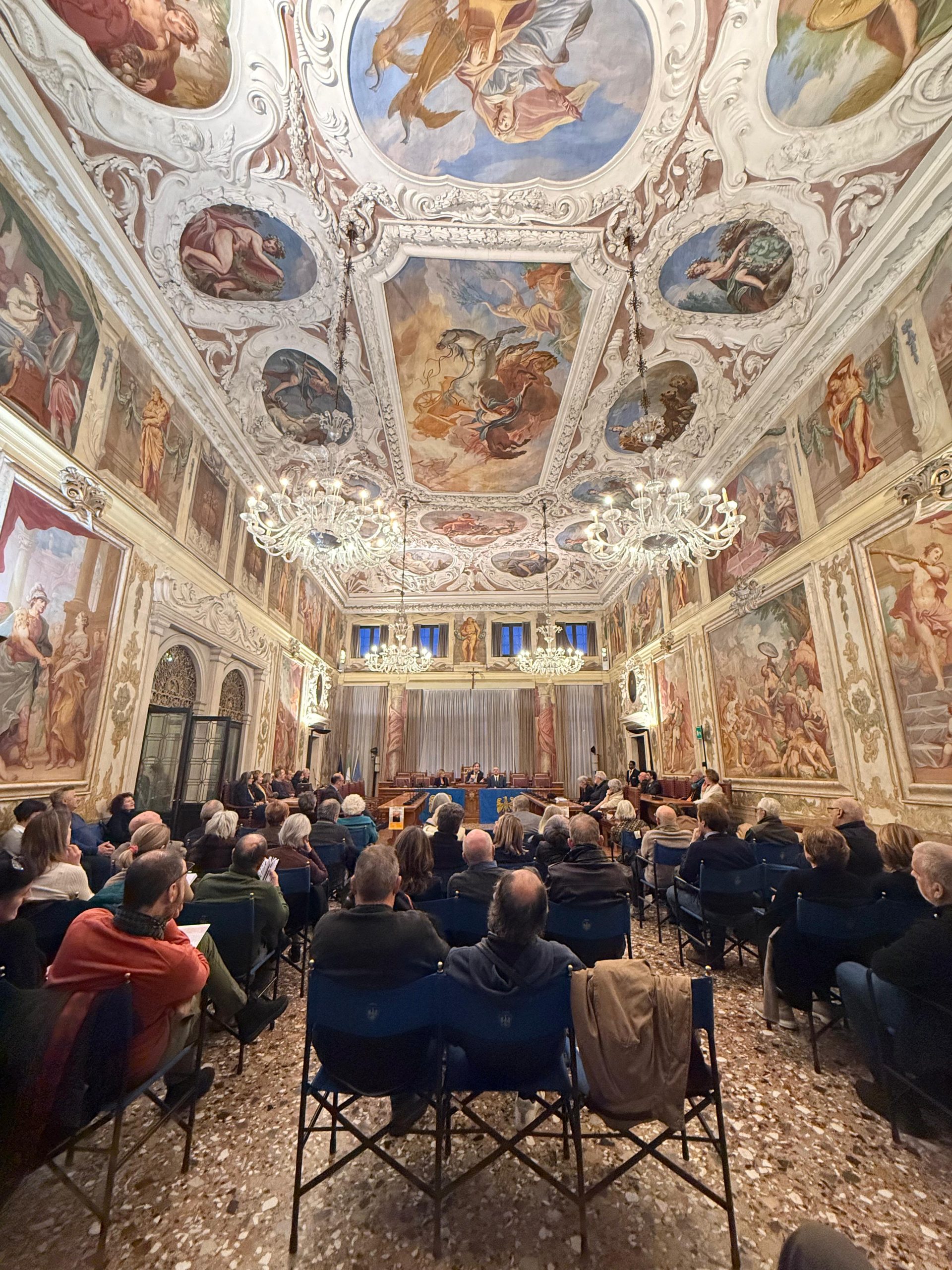 La prime des iniziative pai 80 agns de “La Patrie dal Friûl” (1946-2026). O vin presentât ai 27 di Fevrâr tal Salon di Palaç Belgrado di Udin, il gnûf libri, “CHENTI” romanç furlan di Diego Navarria. A son intervegnûts la gjornaliste Martina Delpiccolo e il diretôr da La Patrie dal Friûl Walter Tomada, l’autôr Diego Navarria cun lis conclusions di Andrea Valcic, president de Clape di Culture “Patrie dal Friûl. Te foto la grand partecipazion di public.