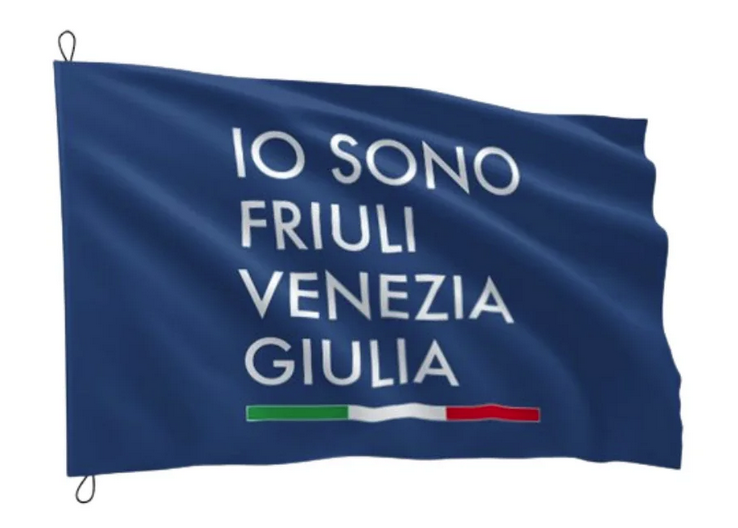 ✽✽ “Mostra con orgoglio la tua appartenenza al Friuli Venezia Giulia con questa bandiera di alta qualità! Realizzata in 100% poliestere, resistente e leggera, presenta una stampa in sublimazione dai colori intensi e duraturi. Il design blu con la scritta IO SONO FRIULI VENEZIA GIULIA la rende perfetta per eventi, manifestazioni o per decorare spazi interni ed esterni. Aggiungila subito al carrello e porta in alto il tuo orgoglio friulano!” Al è ancje il pont di esclamazion par dâ plui fuarce identitarie al messaç publicitari che al compagne la vendite di une bandiere che e discancele la acuile patriarcjâl cu la scrite e un biel tricolôr dongje.